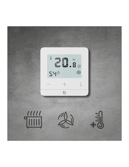 Regulación centralizada y por zonas de la temperatura y la humedad. Conmutación independiente de la calefacción, la refrigeración y la ventilación, medición de la temperatura del suelo con función de límite. Cómodo ajuste del programa de temperatura desde MyJABLOTRON 2, creación de gráficos de temperatura y humedad y funciones de ahorro únicas gracias a la conexión con la alarma. El termostato sustituye al JA-150TP. Ofrece una amplia gama de nuevas funciones con un diseño moderno y una cómoda instalación en la caja.